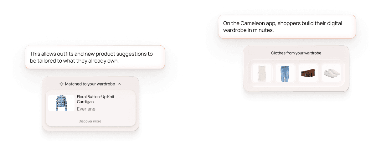 Shoppers answer a few simple questions, and Cameleon instantly recommends the right size, no charts, no guesswork.