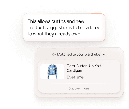 Your product pages get Try-on and Instant Size Guidance. We also sync your catalog to power in-app discovery.